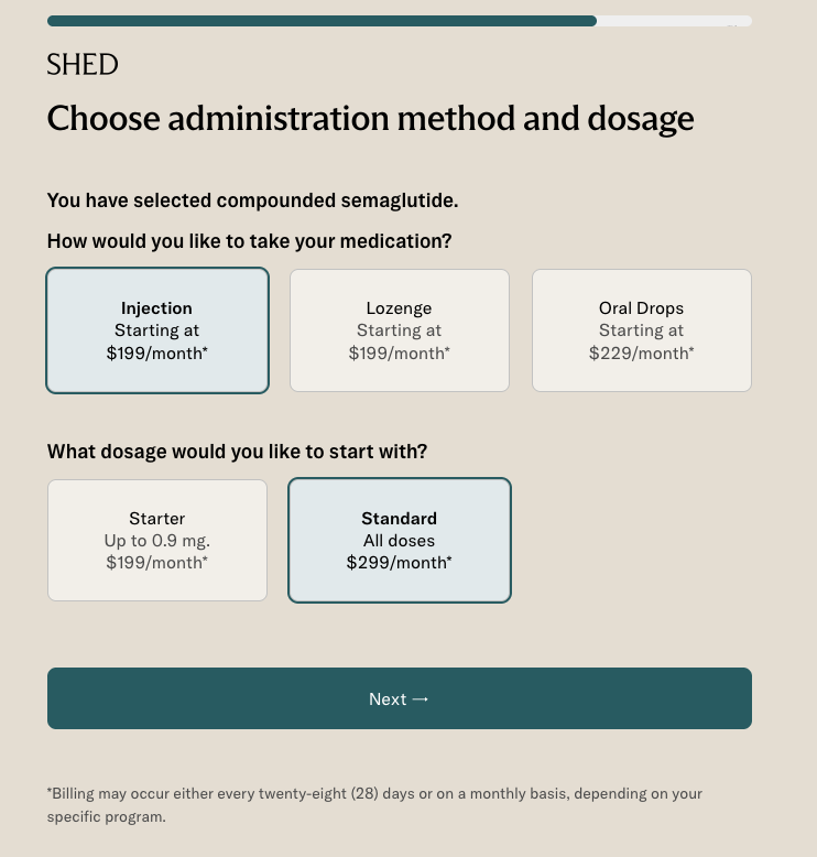 We went through the entire checkout process for each provider on this list to understand the TRUE monthly costs for compounded semaglutide. Below is our list of the most affordable compounded semaglutide providers in 2026. Screenshots below show examples of the pricing screens we reviewed.