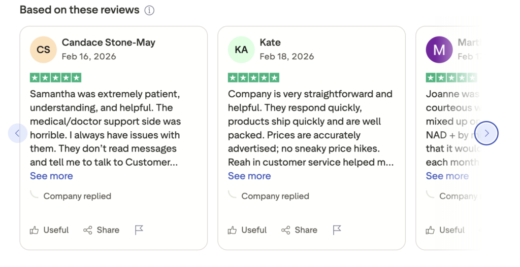 SkinnyRx has the best Trustpilot profile we’ve reviewed. 4.8 stars across 4,147 reviews with specific, detailed customer service praise. The medication format variety (injectable, sublingual, tablets) is a genuine differentiator that most competitors don’t match. The 10% weight loss guarantee adds a layer of accountability you don’t see often.