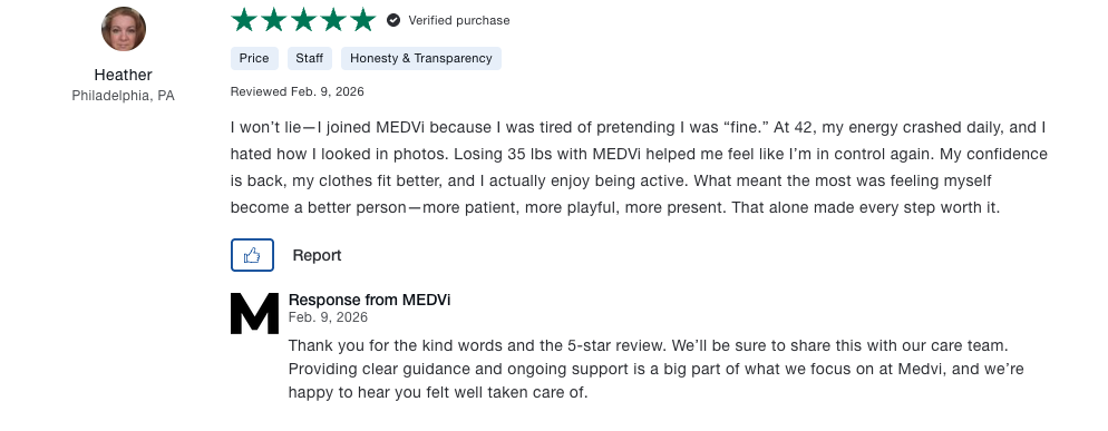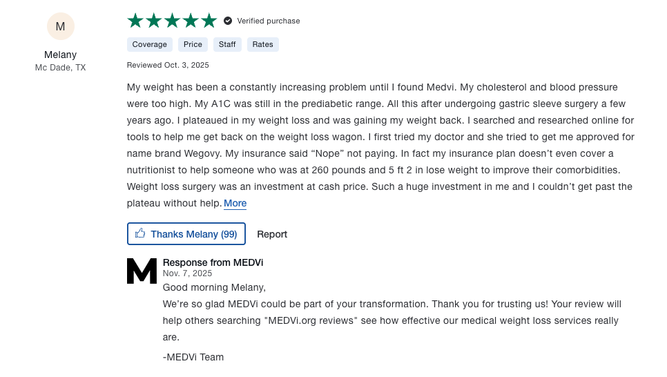 MedVi offers a transparent cash-pay model with no insurance required. Their pricing includes the medical evaluation, the medication itself, and ongoing 24/7 support.