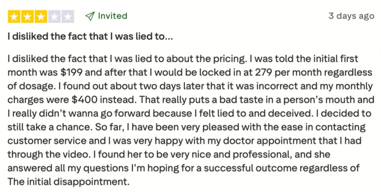 Henry Meds have a surprisingly high customer rating with a 4.5-star rating in Trust Pilot and over 12,000 reviews. Overall, people claim that the staff is professional, knowledgeable, and with caring attitude. They feel supported at every step of the process.