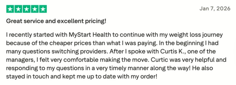 MyStartHealth is a great option for anyone looking for weight loss medication at a budget-friendly price. However, you will need to fill in their quiz to understand their pricing.